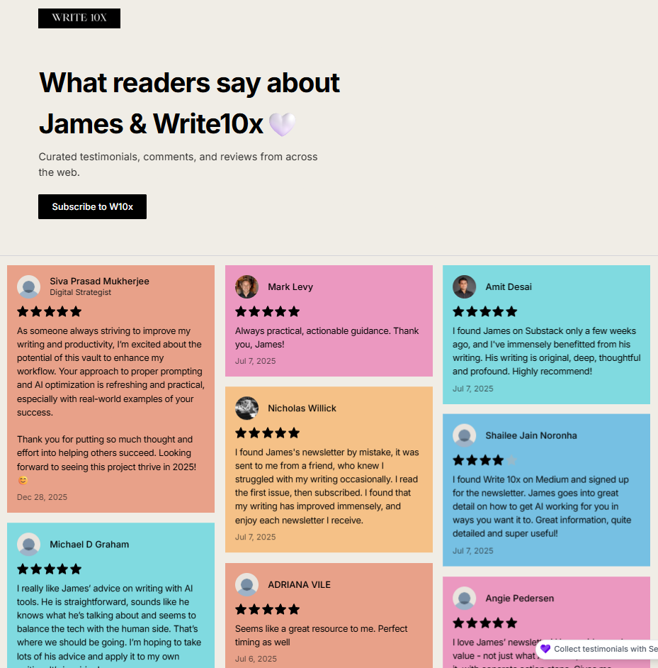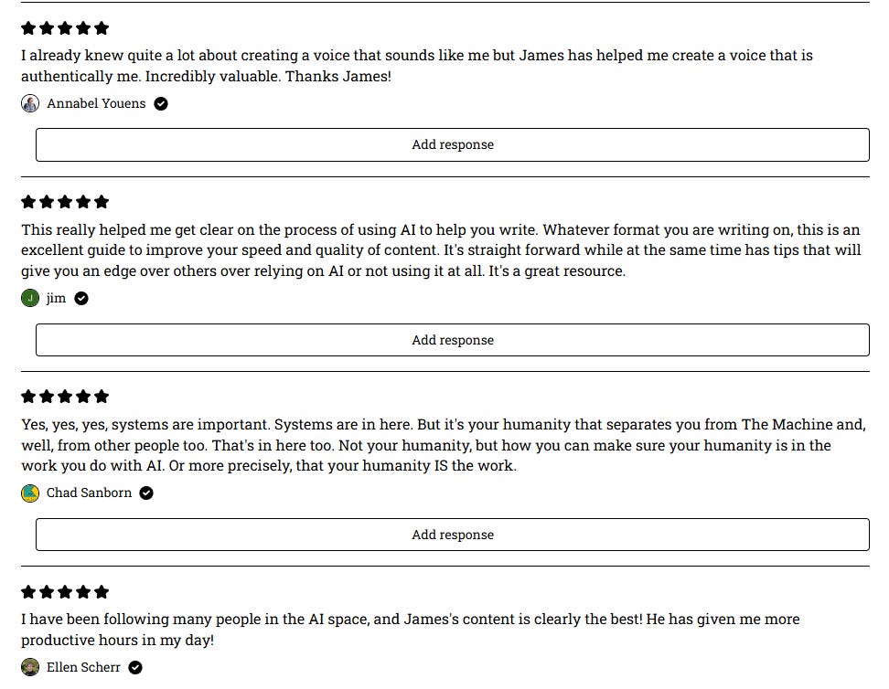 I’ve also actively collected “impact testimonials” for my Authentic AI offer.